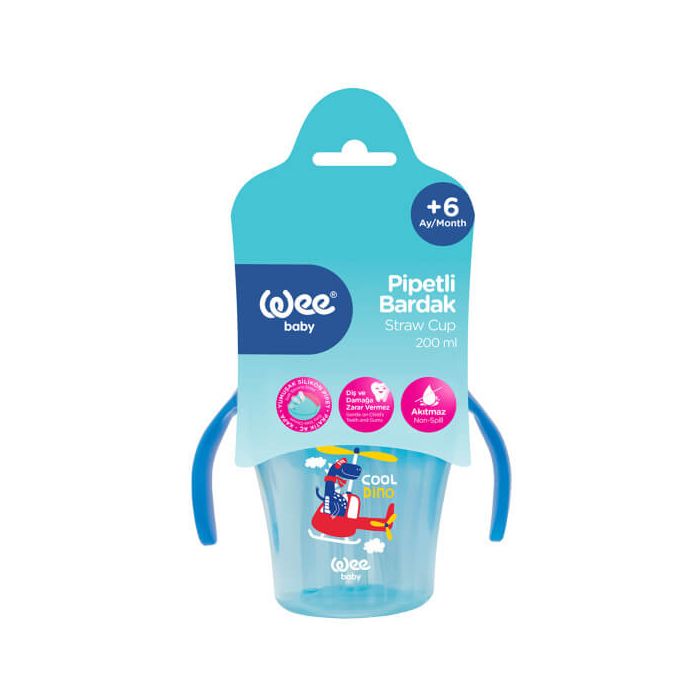 WEE BABY Straw Cup е специална неразливаща се чаша със сламка, подходящa за бебета над 6 месеца. Има лек и удобен дизайн, предназначен за предотвратяване на разливане и пръски. Сламката на чашата е изработена от мек, гъвкав и безопасен силикон, който създава оптимален комфорт при употреба. Меката сламка е съвместима с чувствителната тъкан на устата и небцето на бебето. Върхът й е специално изработен, за да не капе и да не разлива вода. Уи Бейби Чаша със сламка и дръжки има силиконова основа, която предпазва от преплъзване. Капачето на чашата е специално проектирано за използване от бебета, за да могат те лесно да го хващат и движат. Сламката е силиконова и гъвкава. Извитите дръжки са идеални за лесно хващане от бебето. Силициевото покритие в долната част позволява на чашата да стои стабилно. Без BPA, произведен по стандартите на FDA.
