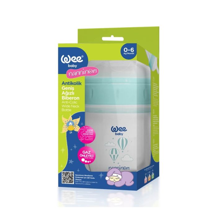 WEE BABY Nanninom Anti-Colic Wide Neck Bottle е бебешко шише с широк отвор, специално проектирано за новородени и бебета от 0 до 6 месеца. Моделът разполага с мека силиконова залъгалка, която имитира естествената форма на майчината гръд и улеснява бебето да се захване по естествен начин. Антиколиковата система предотвратява поглъщането на въздух по време на хранене, което намалява риска от газове, колики и дискомфорт при мъника. Широкото отвърстие на шишето позволява лесно пълнене, изпразване и почистване. Уи Бейби Нанином Антиколик Бебешко шише с широк отвор е изработено от 100% здравословен силикон, без BPA и фталати, съобразено с FDA стандартите. Практичната капачка осигурява защита от изтичане, а шишето може да се стерилизира и почиства лесно с четка или гъба.