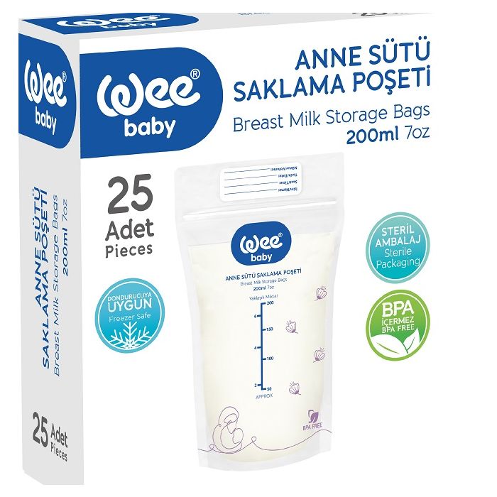 WEE BABY Пликове за съхранение на кърма са стерилни и непропускливи, с надеждна двойна система на затваряне. Капацитетът им е 200 мл. Имат удобен етикет за надписване и могат да бъдат съхранявани във фризер. Уи Бейби Пликове за съхранение на кърма съдействат на майката да запазва мляко в случай на прекомерно производство на кърма, или при употребата на помпа с цел предварително подготвяне на храненията.