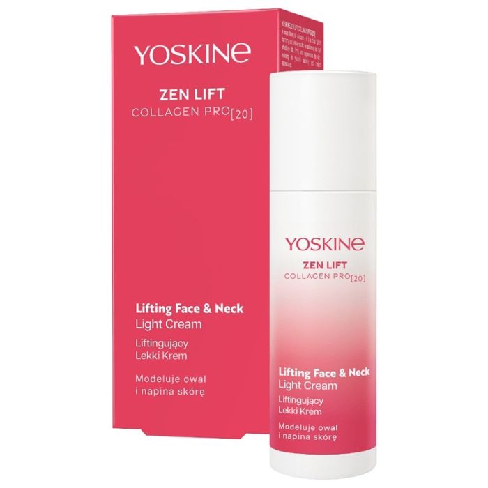 Yoskine Zen Lift Collagen Pro 20 Lifting Light Cream е стягащ крем с лека, флуидна текстура. Създаден е да подчертае лицевия контур, да възвърне еластичността и да редуцира фините линии. Йоскин Зен Лифт Колаген Про 20 Лифтинг крем с лека текстура е формулиран с Collagen Pro 20 – комплекс, включващ хиалуронова киселина и колагенови пептиди, който подпомага стягането, изглажда и осигурява дълготраен лифтинг ефект. Кожата е видимо по-гладка, стегната и озарена. Формулата съчетава висока ефективност с деликатна грижа, превръщайки ежедневната рутина в приятно и освежаващо изживяване.