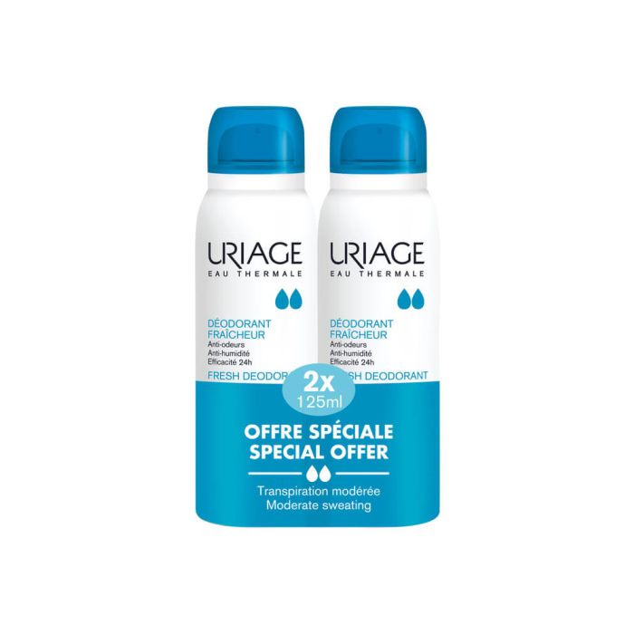 Комплектът съдържа: Uriage Eau Thermale Освежаващ дезодорант против изпотяване за чувствителна кожа 125 мл 2 бр.