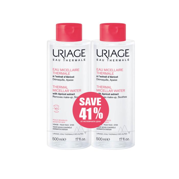 Uriage Eau Thermale Мицеларна Почистваща вода за лице за чувствителна кожа 2 х 500 мл Комплект