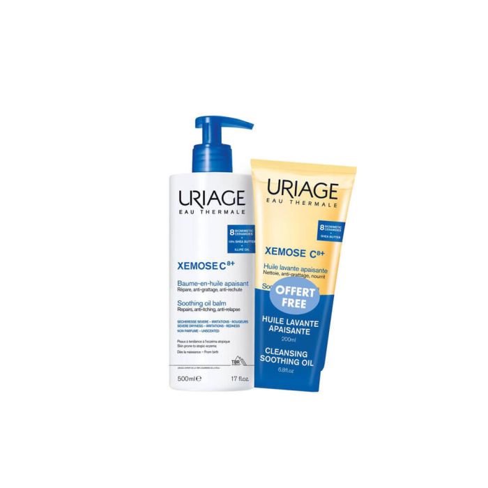 Комплектът съдържа: Uriage Xemose Липидо-възстановяващо олио за суха и много суха кожа 500 мл 1 бр + Подарък: Uriage Xemose Почистващо успокояващо душ-олио за лице и тяло 200 мл 1 бр.