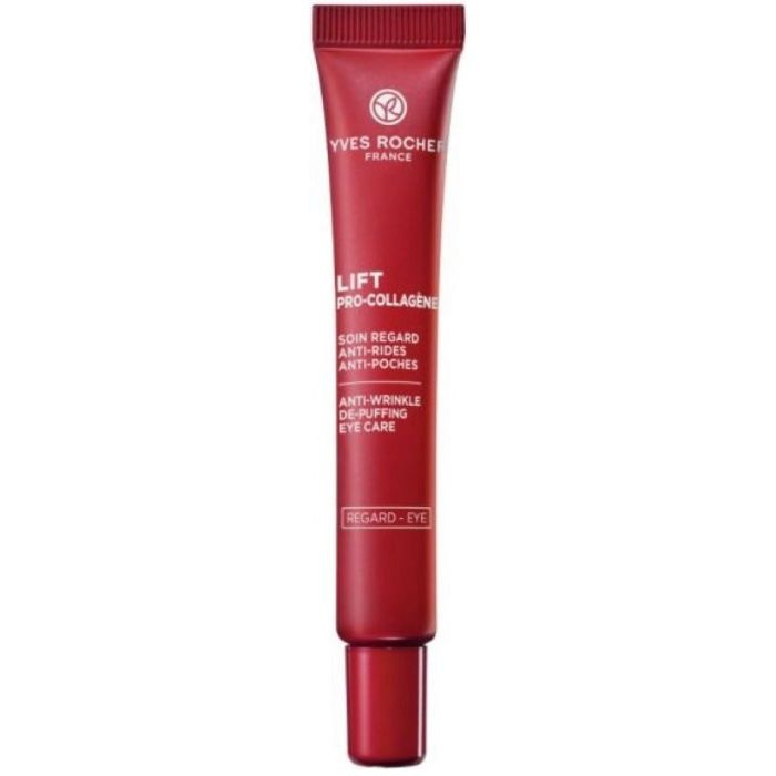 Yves Rocher Lift pro-collagene Anti-wrinkle de-puffing eye care видимо коригира подпухналостта, а бръчките и фините линии изглеждат намалени. Неговите активни компоненти допринасят за стегнат, гладък и по-сияен околоочен контур. Концентрираната формула съдържа екстракт от „ледено растение“ (Ice Plant), комбиниран с растителен колаген и хиалуронова киселина с естествен произход, за цялостна анти ейдж грижа. Подходящ е за всички типове кожа. Формулата на Ив Роше Лифт Про-колаген околоочен крем е с висок процент съставки с естествен произход.