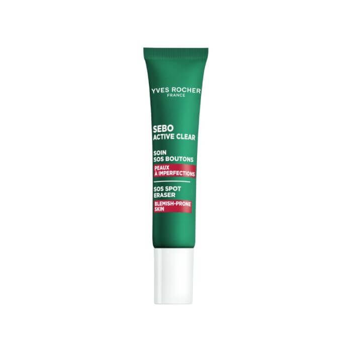 Yves Rocher Sebo Active SOS Spot Eraser e грижа за пъпки, подходяща за кожа, склонна към несъвършенства. Формулата съдържа макроводорасли и сукцинова киселина. Ив Роше Себо Актив СОС Грижа за пъпки изсушава и намалява несъвършенствата. Намалява пъпките и зачервяванията. Съдържа 98% съставки с естествен произход. С лека, гелообразна консистенция. Дерматологично тестван продукт.