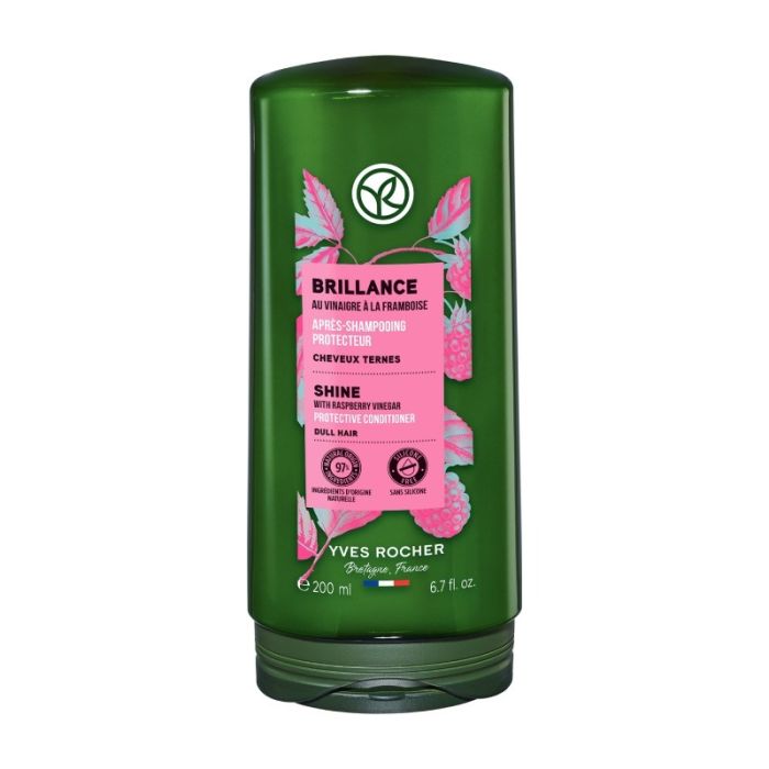 Yves Rocher Brillance Protective conditioner е специално създаден за интензивна грижа за боядисаната коса, като възстановява нейния блясък и жизненост. Със своите 97% съставки от естествен произход, този балсам подхранва и защитава косъма, без да го утежнява. Ив Роше Брилянс Балсам за боядисана коса и блясък хидратира и възвръща естествената красота на косата.