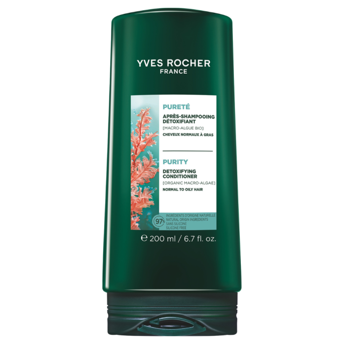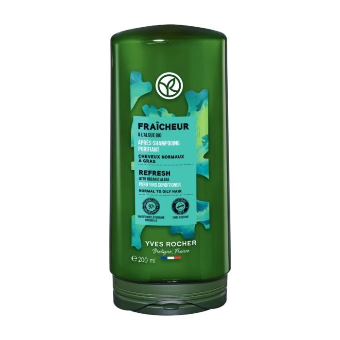 Yves Rocher Fraicheur purifyng conditioner е специално създаден за грижа на косата, склонна към омазняване. Той ефективно почиства и подхранва косата, без да я утежнява, като възстановява естествения ѝ баланс. Със своето съдържание от 97% съставки от естествен произход, този балсам осигурява дълготрайна свежест и лекота на косата, като подпомага разресването. Ив Роше Балсам за мазна коса е формулиран с глицерин, който спомага за запазване на хидратацията в косъма.