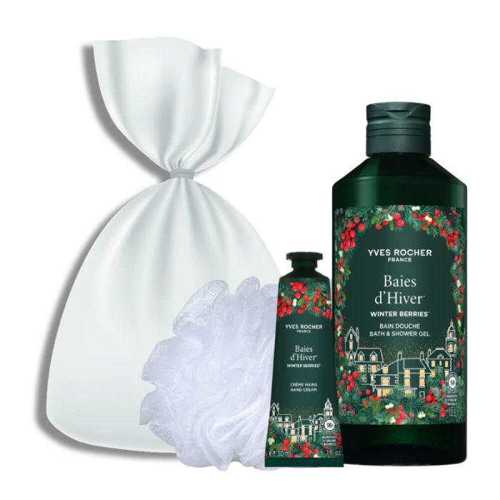 Комплектът съдържа: Yves Rocher Baies d'Hiver Душ гел Зимни плодове 400 мл 1 бр + Yves Rocher Baies d'Hiver Крем за ръце Зимни плодове 30 мл 1 бр + Подарък: гъба за баня 1 бр.
