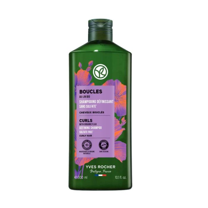 Yves Rocher Curls Defining Shampoo e шампоан за къдрава коса обогатен с органичен лен, който нежно почиства косата, оформя и дефинира къдриците, без да ги утежнява. Със своята подхранваща и полупрозрачна гелообразна текстура ви помага да имате дефинирани къдрици за 48 часа. Контролира наелектризирането. Косата е лека, мека и блестяща. Ив Роше Шампоан за къдрава коса е без сулфати и силикони. С 95% натурални съставки.